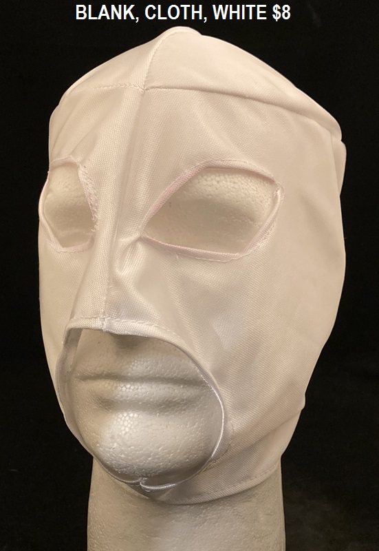"Blank" masks with no design, for your own customization, are available in a cloth polyester material, in five colors, for $8 ea.