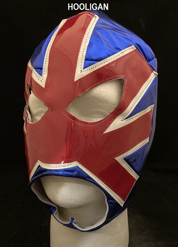 Mexican wrestler masks, shipped promptly from our US warehouse via Priority or Express Mail. 'Technicos' and 'Rudos' alike, (good guys and bad guys). Well constructed with foam lining, vinyl trim, and lace-up closure in back. One-size, fits most adults. Some designs occasionally available in "XL" for hat size 8 and up. Currently we have the gold Ramses mask in XL, for $15.